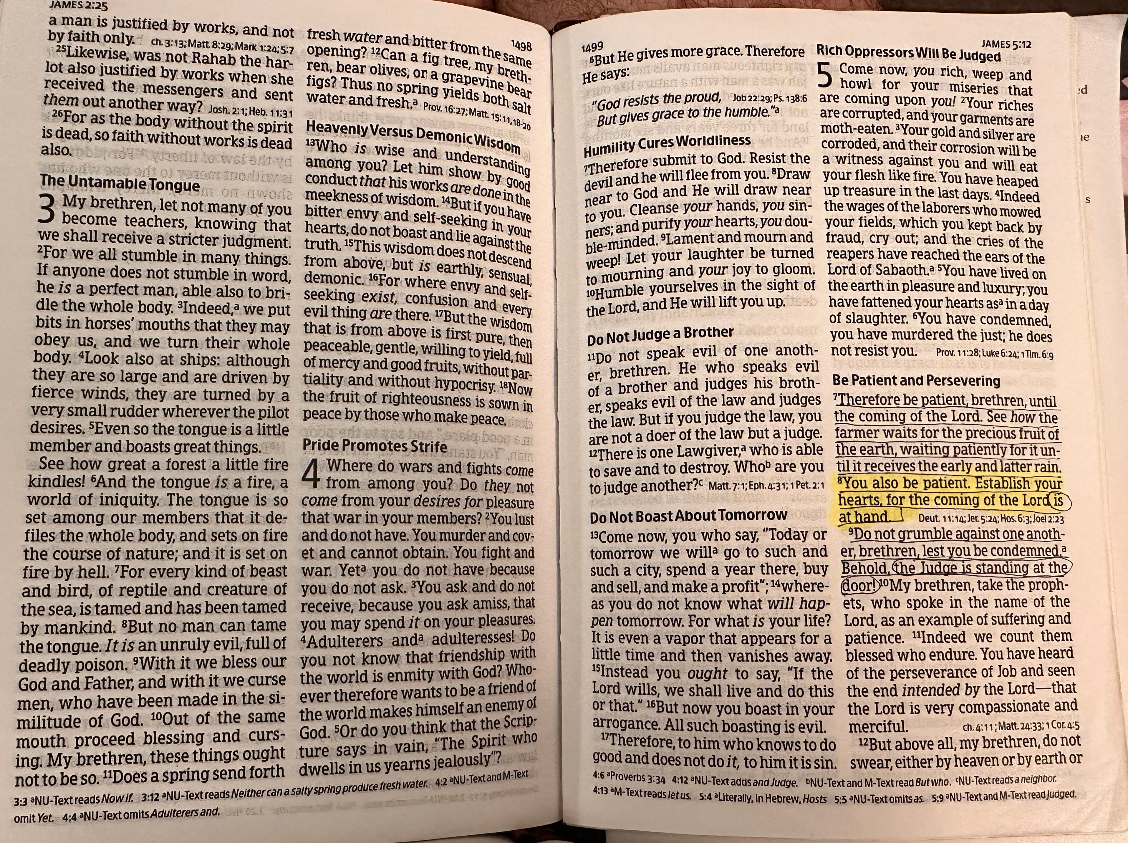 “You also be patient. Establish your hearts, for the coming of the Lord is at hand.” (NKJV) —James 5:8